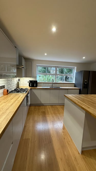 At Evans Installations, we provide fully designed, built, and installed kitchens tailored to your home. With years of experience in high-quality craftsmanship, we handle the entire project in-house — including fitting, plumbing, electrics, tiling, flooring, and any required building works. From initial design to the final finish, we ensure every detail is completed to the highest standard, giving you a kitchen that’s both beautiful and built to last.